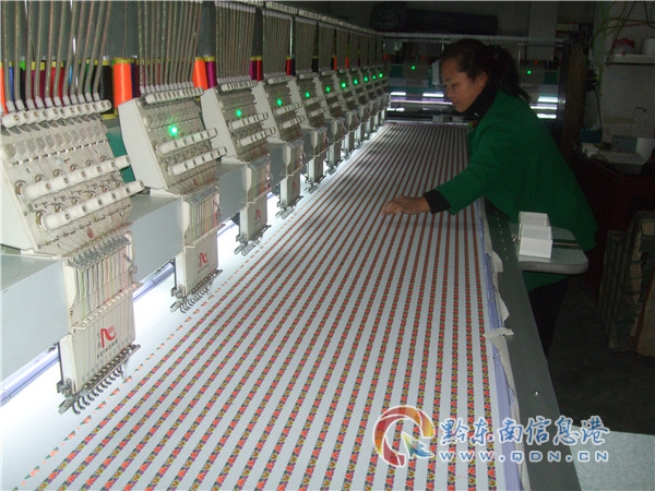 高考落榜不落志,就地創(chuàng)業(yè)奔富路。為了培養(yǎng)兒子讀書和照顧老人,楊雨夕經(jīng)過幾年了解本地短裙苗婦女需求五彩花衣,并走訪有關(guān)繡坊生產(chǎn)的苗繡廠和訂閱相關(guān)資料,認(rèn)真研究等科技知識(shí)。于是,楊雨夕向丈夫余國(guó)輝提出到雷山縣城創(chuàng)辦一家“雷山縣雨夕繡坊”的建議,得到余國(guó)輝的同意后,2017年她貸款8萬元,丈夫支持5萬元,向親戚朋友借10萬元共計(jì)23萬元,用于購買三臺(tái)機(jī)械等設(shè)備,并于當(dāng)年7月5日辦起了營(yíng)業(yè)執(zhí)照(個(gè)人經(jīng)營(yíng)),在丹江鎮(zhèn)羊場(chǎng)壩租用一家民房樓下空間120平方米場(chǎng)地,年租金2萬元。于2017年7月6日開機(jī)試產(chǎn)獲得成功。