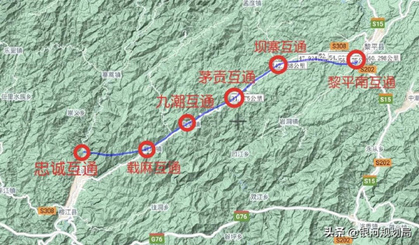 由沿榕高速忠誠互通引出,在忠誠互通順接雷榕高速,之后橫跨寨蒿河,之后經(jīng)過歸江溪、歸洞、小利村、大利村,在載麻鎮(zhèn)南側(cè)設置載麻互通,之后沿356國道至九潮鎮(zhèn),在九潮鎮(zhèn)東部設置九潮互通,之后小榕村、大榕村,在茅貢鎮(zhèn)南側(cè)設置茅貢互通,之后經(jīng)過歸左至高近村然后繼續(xù)沿356國道至壩寨鄉(xiāng),在壩寨鄉(xiāng)東部設置壩寨互通,出壩寨后經(jīng)錦團村、核洞、毛落,終點為黎平南互通附近。