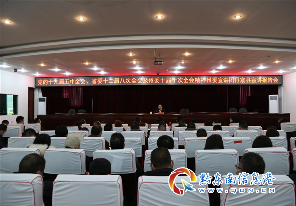 本網(wǎng)訊 根據(jù)州委統(tǒng)一安排,繼州直機(jī)關(guān)宣講結(jié)束后,1月8日和12日,州委宣講團(tuán)成員、州直機(jī)關(guān)工委常務(wù)副書記高俊華分赴丹寨縣和岑鞏縣宣講黨的十九屆五中全會、省委十二屆八次全會及州委十屆十次全會精神。兩個縣在家的四家班子領(lǐng)導(dǎo),縣直部門、鄉(xiāng)鎮(zhèn)主要負(fù)責(zé)同志等共計400余人參加聆聽報告會。