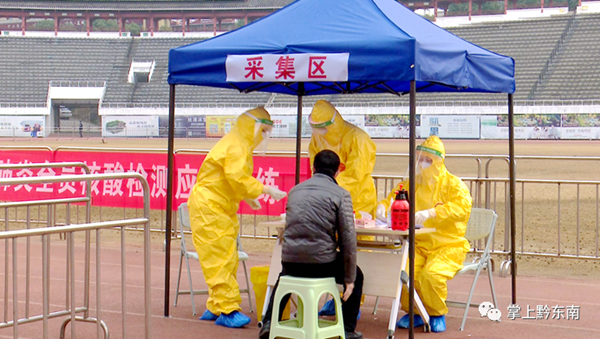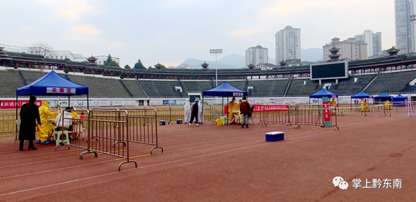 記者在凱里民族體育場檢測點采訪了解到,這個檢測點在今天將完成來自24家州直單位的2160人的核酸檢測,整個檢測點被分為了等候區、采集區、緩沖區和臨時隔離區,所有的待檢人員在等候區這里等待、登記,他們被要求保持一米的安全距離,在進入了采集區之后,將會由身著防護服的工作人員對他們完成樣本采集和登記記錄。