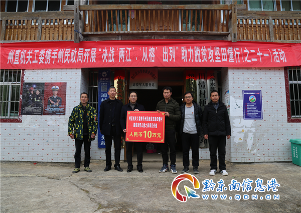 傾情投入新增幫扶村,助推脫貧摘帽精彩出列。選派1名副科級干部駐田懂村任第一書記,開展駐村幫扶工作。工委領導班子成員到村蹲點調研20余天50余人次、宣講政策20余次,解決村級脫貧攻堅工作經費現金41余萬元;協調州民政局支助村“兒童之家”建設項目資金10萬;協調州人社局解決11個村級公益性扶貧就業崗位,支助開展2期就業技能培訓,培訓勞動力80余人;協調州凱宏集團、東黎能投公司和榕江縣信用聯社支助人居環境整治水泥150噸(含運輸)價值5.7萬元;協調州慈善總會支助工作經費2萬元;攜手州民政局、州人社局、州文體廣電旅游局、團州委、州文聯、州紅十字會、州郵政分公司、州中醫醫院、州銀行業協會、黔東南信息港、黔東南州飛鴻公益聯合會、州汽車產業聯合會、州廣告協會、州鴻森廣告策劃有限公司等30余家單位及愛心企業開展“決戰‘兩江’、‘從榕’出列”助力脫貧攻堅田懂行活動21次,為田懂村送去水泥、辦公用品、糧油、口罩、棉被、衣物等各類物資價值共計33余萬元。