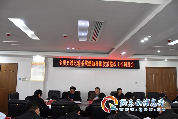 本網訊 1月29日下午,州交通運輸局在交通大廈七樓會議室召開全州系統燃油補貼發放整改工作調度會,會議由州交通運輸局黨組成員、副局長何山主持。州交通運輸局相關領導及運輸科、航務科、運輸發展中心負責人和相關科室負責人,各縣(市)交通運輸局主要領導及具體負責燃油補貼發放工作相關人員參加此次會議。