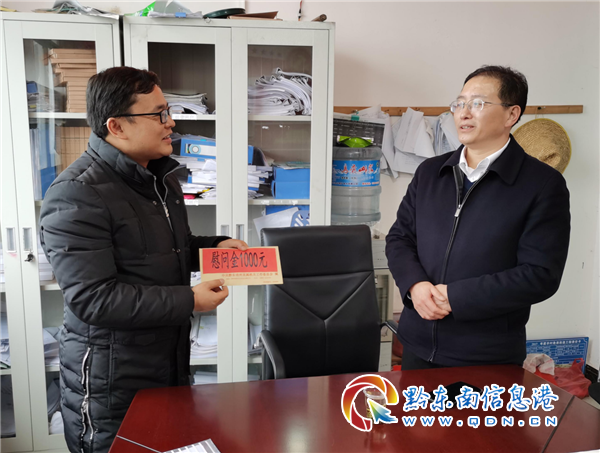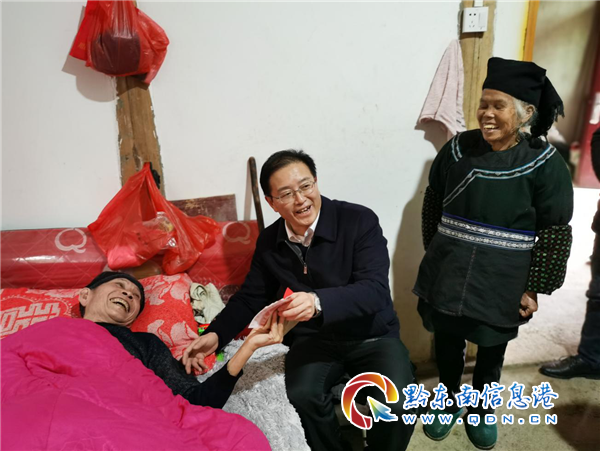 本網(wǎng)訊 新春佳節(jié)臨近,為進(jìn)一步加強(qiáng)黨內(nèi)激勵(lì)關(guān)愛(ài)幫扶,及時(shí)把黨的關(guān)懷和溫暖送到幫扶村駐村干部、困難老黨員和離任村干心坎上。2月5日,州直機(jī)關(guān)工委常務(wù)副書(shū)記高俊華深入定點(diǎn)幫扶的榕江縣興華鄉(xiāng)田懂村開(kāi)展春節(jié)慰問(wèn)活動(dòng),共為6戶慰問(wèn)對(duì)象送去慰問(wèn)金3500元。
