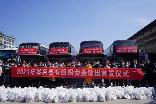 岑鞏縣此次集中輸送由政府出資開通返崗就業(yè)勞動力較為集中的廣東、浙江、江蘇、江西、福建等5條專線11個站點(diǎn),共發(fā)出專車 6輛、輸出280人。該縣農(nóng)村信用聯(lián)社還為每個外出務(wù)工人員發(fā)放方便面、面包、飲用水等物資,為他們出行提供生活保障。