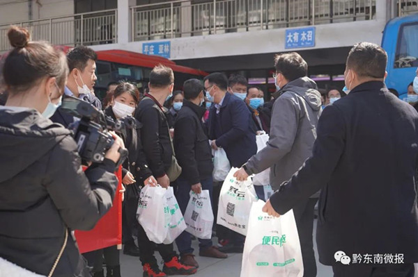 臺江縣此次集中輸送14人前往廣東東莞、惠州等地返崗就業(yè)。為讓務(wù)工人員安全順利到達(dá)指定乘車點(diǎn),該縣由縣人社局長帶隊(duì),配備由公安、醫(yī)生、鄉(xiāng)鎮(zhèn)負(fù)責(zé)人組成的護(hù)送隊(duì),將務(wù)工人員從鄉(xiāng)村送到縣城集中乘車輸出。