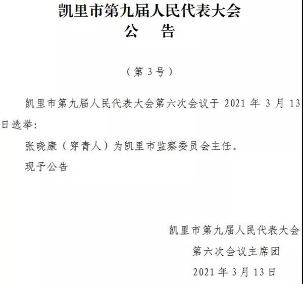 2021年3月13日,在凱里市第九屆人民代表大會第六次會議上當選為凱里市監察委員會主任。