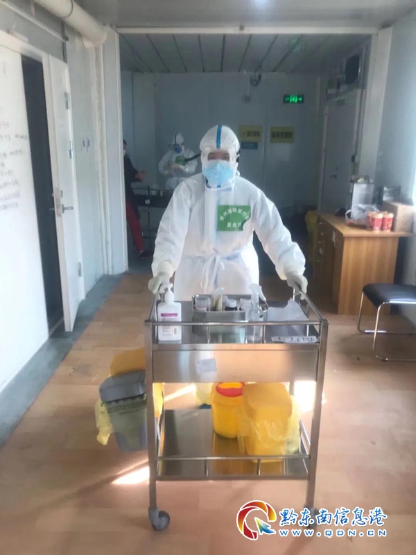 在抗擊病毒的最前沿,必須打起十二分精神,細心護理幫助患者樹立戰勝病魔的信心。工作中,顧鵬舉一直沖在最前面,端屎倒尿倒垃圾,臟活累活都搶著干,只想盡可能的多為病人做一些事情,他覺得自己是團隊里面比較年輕的,體力也比女護士好。在援鄂57天期間,顧鵬舉除了奮戰在抗疫一線為患者貼心治療,還事事沖在最前面,盡力分擔女同事的工作。鄂州市鳳凰酒店作為貴州省醫療隊的物質、醫療、生活用品的臨時集中倉庫,每隔3-5天郵政快遞車都會送來物質。顧鵬舉作為第一批援鄂醫療隊的男同志,每次看到群里面的通知,需要下貨領取物資時,他都會第一時間和隊友們一起去幫忙,待搬完物質后,還把運送來的物資分發到每個同事寢室。