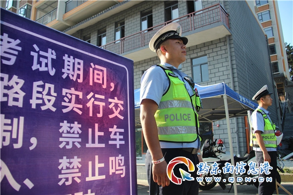 高考首日,黔東南苗族侗族自治州公安局交警支隊所屬的23個交警大隊參戰民警、輔警堅持做到文明規范執法,對接送考生車輛發生的輕微交通違法行為,教育警告后及時放行;對發生道路交通事故時,做到快速出警、快速處理,快速恢復交通,快速組織車輛轉送考生,堅決保障接送考生車輛順利通行。