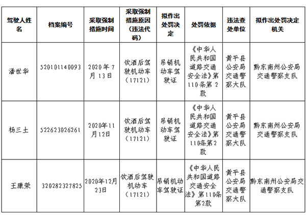 自公告之日起7日內,機動車駕駛人可以到黔東南州公安局交通警察支隊依法提出聽證申請。逾期未提出申請的,本機關將依法吊銷機動車駕駛證。