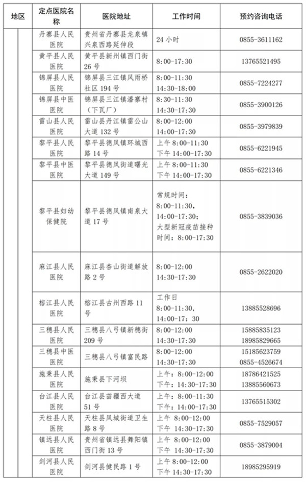 為做好貴州省新冠病毒疫苗接種禁忌癥評(píng)估服務(wù)工作,為群眾提供健康咨詢,方便群眾正確識(shí)別禁忌癥,讓適宜人群放心接種,現(xiàn)將貴州省新冠病毒疫苗接種禁忌癥評(píng)估定點(diǎn)醫(yī)院名單公布如下: