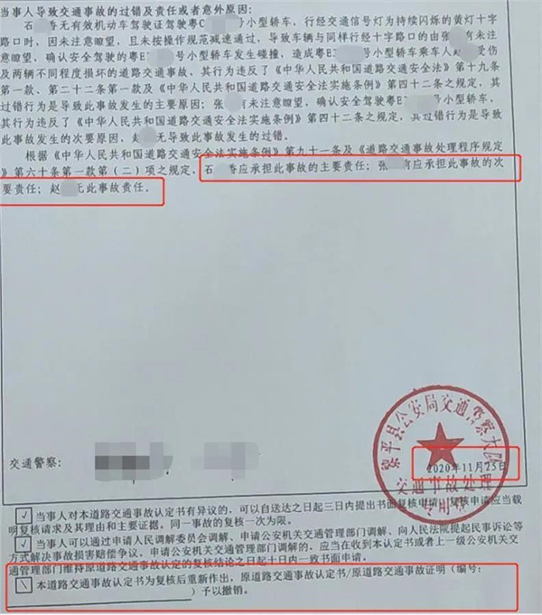 2020年11月25日事故認(rèn)定書下半頁(來源:趙先生提供)