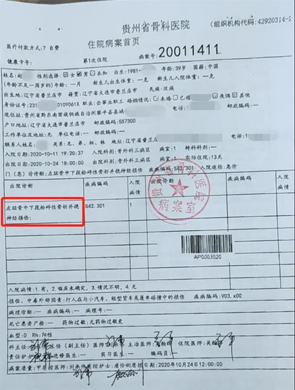 遼寧大連的趙先生去年來到貴州黎平縣打工。2020年10月3日夜里11點(diǎn)多,他乘坐司機(jī)張某有駕駛的小汽車從黎平縣前往廣西桂林,行駛過程中突然被一車輛撞擊,經(jīng)診斷左肱骨中下段粉碎性骨折、左上臂橈神經(jīng)損傷、多處軟組織損傷,但其他人均無恙。