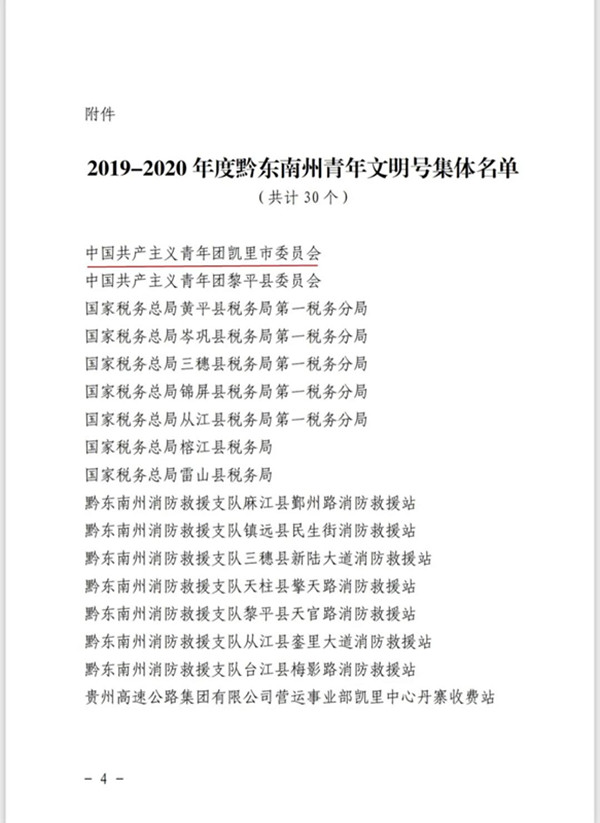 附:2019-2020年度黔東南州青年文明號集體名單