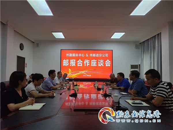 本網訊 8月26日下午,郵報合作座談會在州分公司三樓會議室召開,黔東南州融媒體中心黨委書記、主任常海,黨委委員、副總編輯李田清一行,州分公司黨委書記、總經理楊積生,黨委委員、副總經理黎平及業務部門負責人參加會議。