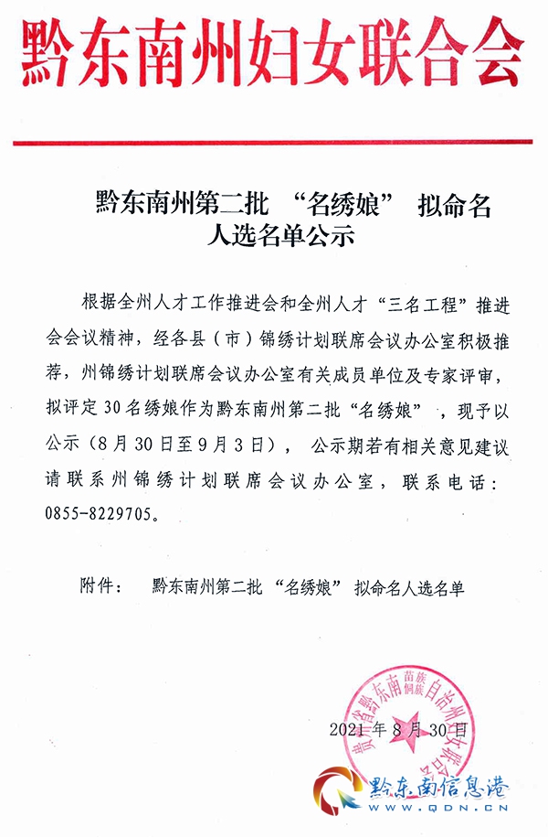 黔東南州第二批 “名繡娘” 擬命名人選名單
