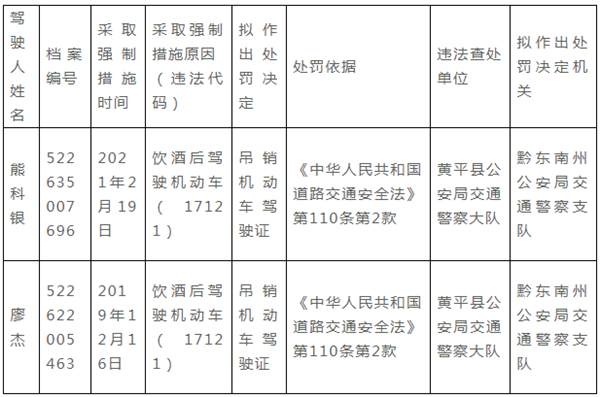 自公告之日起7日內,機動車駕駛人可以到黔東南州公安局交通警察支隊依法提出聽證申請。逾期未提出申請的,本機關將依法吊銷機動車駕駛證。