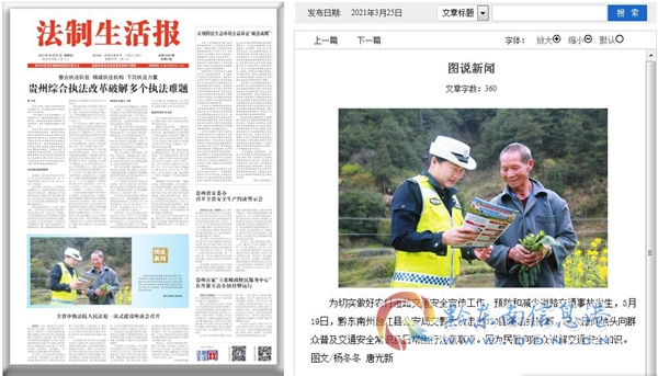 今年以來,《人民公安報》、《精神文明報》、《貴州日報》、《當代貴州》、《法制生活報》、《貴州民族報》、《黔東南日報》以及各級網(wǎng)絡媒體對黔東南苗鄉(xiāng)侗寨“交警老師”紛紛點贊,100多張新聞圖片采用,展現(xiàn)了苗鄉(xiāng)侗寨“交警老師”風采!
