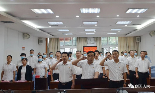 會議表決了縣鄉人大換屆選舉和縣第十七屆人大七次會議有關事宜,審議并表決了人事任免事項。會議決定接受肖金城同志辭去劍河縣人民政府縣長職務的請求,報劍河縣第十七屆人民代表大會備案;會議依法免去王在騰同志劍河縣人民政府副縣長職務、王魯平同志縣統計局局長職務;會議依法任命楊勝朝同志為劍河縣人民政府副縣長、代理縣長,鮑崇江同志為劍河縣人民政府副縣長,王家榮同志為劍河縣統計局局長。陳通權為新任命人員頒發了任命證書,并舉行了憲法宣誓儀式。