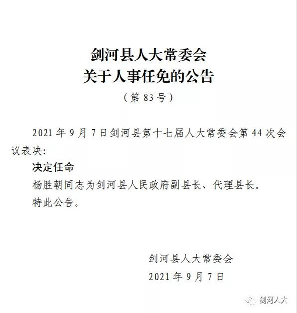 劍河縣任命一名副縣長、代理縣長