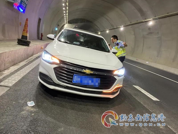 本網訊 2021年10月2日,國慶長假的第二天,黔東南州交警支隊高速一大隊民警在對轄區內高速公路巡邏時,在凱里環城高速公路紅豐隧道內,發現一輛晉H號牌的白色轎車停在緊急停車帶內,后方沒有擺放任何安全提示牌,也沒有開車輛雙閃應急燈。因為正值國慶假期,高速公路車流量較大,隧道內停車存在著十分巨大的安全隱患,稍不注意很有可能引發嚴重的交通事故。