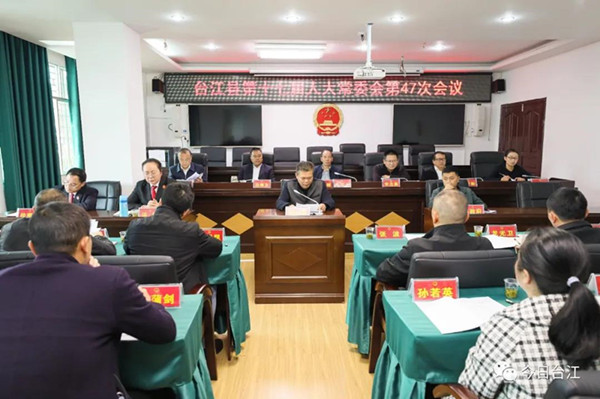 11月4日,臺江縣第十七屆人大常委會第47次會議在縣人大五樓會議室召開。縣人大常委會主任全宏超,副主任李志勇、劉開新、張博根、吳秀瓊出席會議,縣人大常委會黨組成員范修文、副縣長周澤東、縣法院代理院長宋紅燕、縣檢察院代理檢察長李家彬列席會議。會議由全宏超主持。