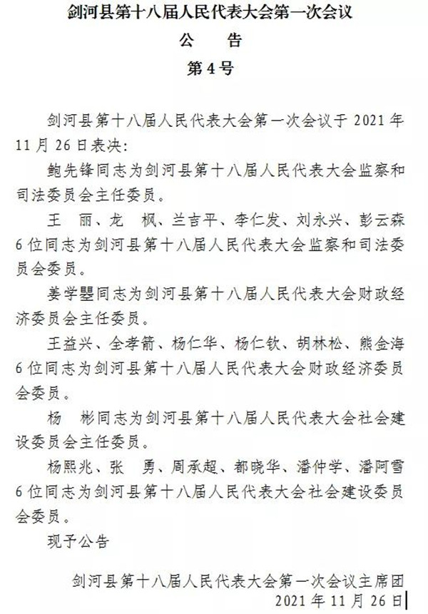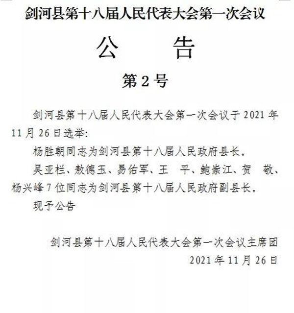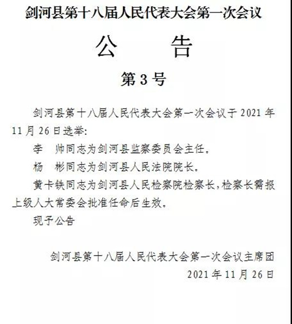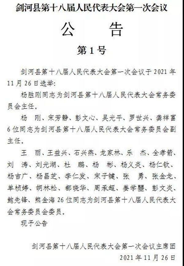 劍河縣第十八屆人民代表大會第一次會議公告