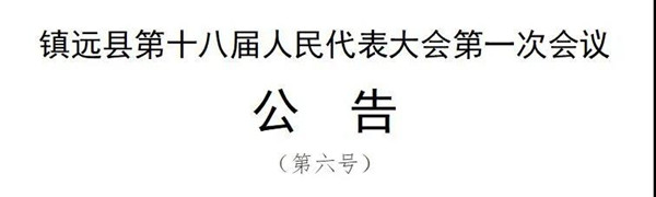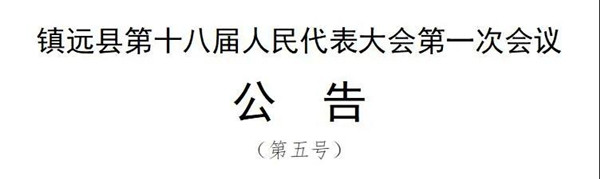 鎮遠縣第十八屆人民代表大會第一次會議于2021年11月30日,選舉出鎮遠縣第十八屆人民政府縣長、副縣長,現予以公告: