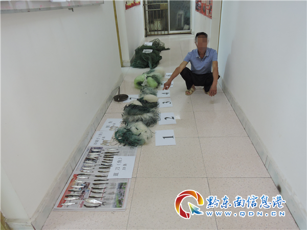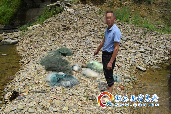 4月24日13時(shí),榕江縣聯(lián)合行動(dòng)巡查組巡查到定威鄉(xiāng)定旦村龔家溝大橋時(shí),發(fā)現(xiàn)橋下河里有人正在將漁船往岸邊停靠,民警立即停車下到河邊進(jìn)行處置。經(jīng)查證當(dāng)事人為定威鄉(xiāng)定旦村王某某,其自稱剛從河里用漁網(wǎng)捕撈到的一點(diǎn)魚準(zhǔn)備用來喂貓。經(jīng)民警及縣農(nóng)業(yè)農(nóng)村局工作人員現(xiàn)場(chǎng)清點(diǎn),共有41條魚:其中俗稱為藍(lán)刀魚的有33條、刨魚4條、沙滾子魚4條,發(fā)現(xiàn)漁船上有剛從河里收上來的地籠2個(gè),以及6張漁網(wǎng)。