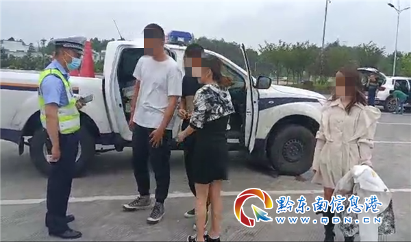 “五一”節假日第二天,黔東南州交警支隊高速三大隊轄區沿榕高速迎來了車流高峰,為保障路面安全暢通,大隊強化路面巡控,及時消除安全隱患。當日13時30分許,民警周清、輔警孫桃柱正巡邏至下行線羊場服務區附近時,突然發現前方應急車道內有一個女孩正在獨自行走,路上的車輛從旁邊呼嘯而過,情況十分危險,民警立即駕駛警車靠邊停車,并上前詢問女孩情況。女孩一邊哭著,一邊向民警求助,要求民警送她回家。為了保障女孩安全,民警立即讓她上警車,準備將她帶到服務區內再問明原因。在警車剛駛入服務區不久,便有自稱是女孩朋友的兩男一女迎了上來。