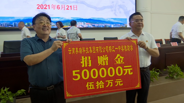 6月21日,云南養(yǎng)瑞集團(tuán)黨委書記、董事長、總裁邵全一行到榕江一中開展捐贈(zèng)活動(dòng),共捐贈(zèng)60萬元人民幣用于設(shè)立榕江一中養(yǎng)瑞尚善獎(jiǎng)學(xué)金。相關(guān)縣領(lǐng)導(dǎo)參加活動(dòng)。