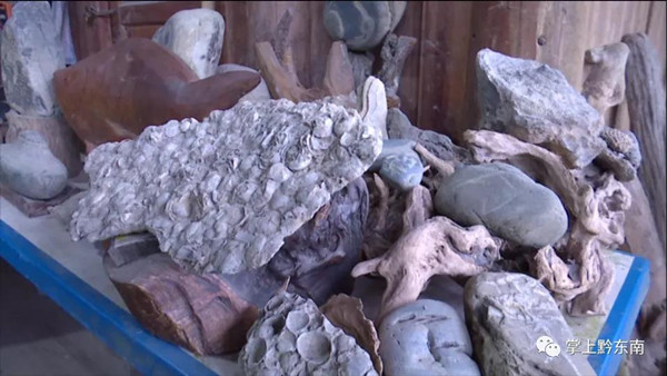 榕江縣奇石愛好收藏者 易忠誠:“榕江這幾條江我都基本上都走完了,我收藏是以化石為主,家里僅化石就夠開一個館了。”