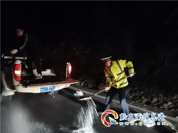 本網訊 1月6日以來,受低溫天氣影響,貴州省施秉縣內國省道部分路在地圖中查看段、多處縣鄉村道路出現路面凝凍,影響群眾安全出行。8日凌晨氣溫降到最低,是抗凝保暢關鍵時段,交通警察爭分奪秒,搶戰各交通節點,全身心保安全促暢通。