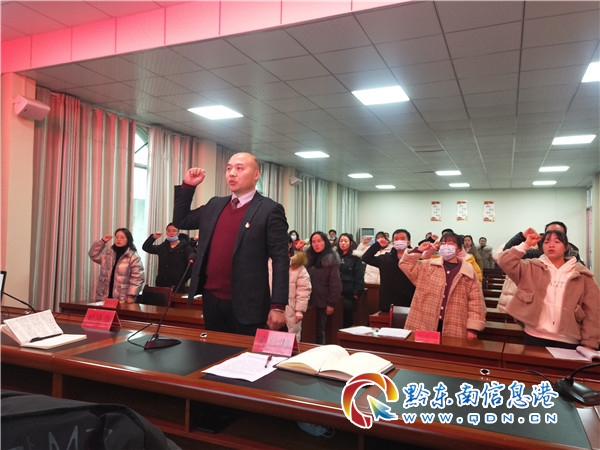 開班儀式上,施秉縣委教育工委副書記、縣教育和科技局局長吳位雄帶領(lǐng)32名新進教師進行入職宣誓,莊嚴(yán)許下作為一名人民教師的神圣承諾。并從“要養(yǎng)成學(xué)習(xí)的習(xí)慣,用知識成就夢想;要有崇高理想,堅持正確的政治方向;要有主人意識,主動積極工作;要有敬業(yè)精神,能吃苦耐勞;要有嚴(yán)謹(jǐn)?shù)闹螌W(xué)態(tài)度;對學(xué)生要有人文情懷;對自己要有嚴(yán)格的要求;對教育工作要堅持不懈。”八個方面對新進教師們提出要求和寄予希望,希望他們能迅速轉(zhuǎn)變身份,熟悉教師崗位工作,爭做習(xí)近平總書記提出的“有理想信念、有道德情操、有扎實學(xué)時、有仁愛之心”的“四有”好老師。