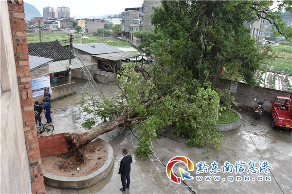 本網(wǎng)訊 5月10日下午,群眾報警稱,城關(guān)鎮(zhèn)平寧小學(xué)門口處,由于長時間刮風(fēng)下雨,導(dǎo)致一棵大樹傾倒,危及村民和過路行人的安全,急需救助。