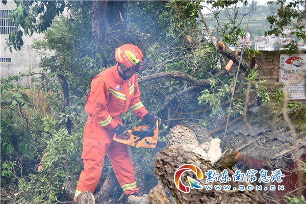接警后,當(dāng)?shù)叵谰仍藛T立即前往處置,只見一棵高約25米、直徑約80公分的大樹橫倒在地上,還壓著數(shù)根電線,消防指戰(zhàn)員根據(jù)現(xiàn)場情況,利用機動鏈鋸對樹枝進行切割并對樹干進行了分段切割,經(jīng)過緊張有序的努力,隱患被成功排除。(潘勝文)
