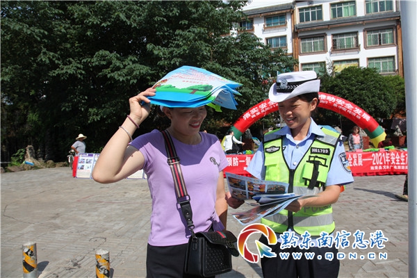 宣傳臺前,交通民警準備好宣傳資料,不時遞到群眾手上。擺放典型交通事故案例展板,讓過往群眾觀看,提升安全意識。接受群眾現場咨詢,講解交通安全知識,提醒群眾不乘坐低速載貨汽車、超員車、貨車,不亂穿馬路,確保安全出行。(文/圖:李天紅/宋學燕)