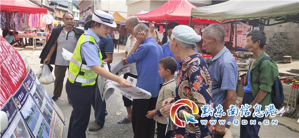 民警走進鄉村市場、路邊商店,講解道路交通安全知識,分析道路交通事故案例,講解酒后駕駛、無牌無證、騎乘摩托車不戴安全頭盔等違法行為的危害性,分析乘坐超員車、報廢車、農用車的危險性,提升群眾自我防護意識。引導廣大群眾時刻牢記交通安全,主動勸導家人、朋友遠離交通陋習,養成安全文明出行的良好習慣。