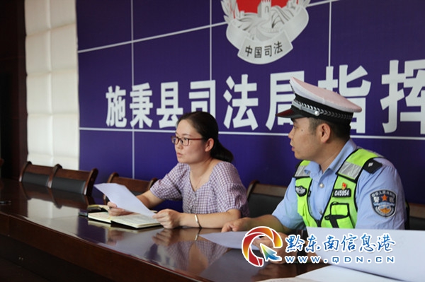 本網訊 為宣揚和傳播文明交通理念,營造自覺抵制酒駕違法的良好氛圍,預防和減少涉酒交通事故發生。8月18日,貴州省黔東南州施秉縣交警大隊民警走進縣司法局,協同開展“零酒駕”單位創建活動。