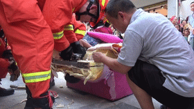 消防指戰員成功將小男孩救出