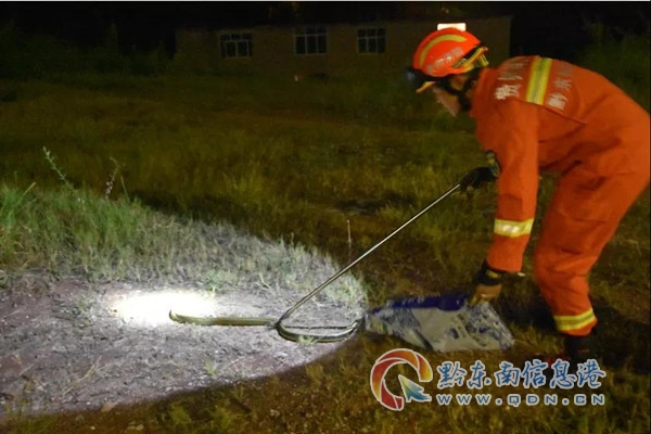 “這么晚太麻煩你們了,太謝謝你們,現在把蛇給抓住了,心中的石頭終于落下,不然都無法入睡,辛苦你們了......”,報警人對消防人員晚上出警處理表示感謝。(潘勝文 黃柱富)