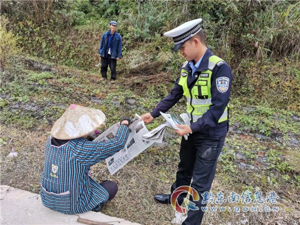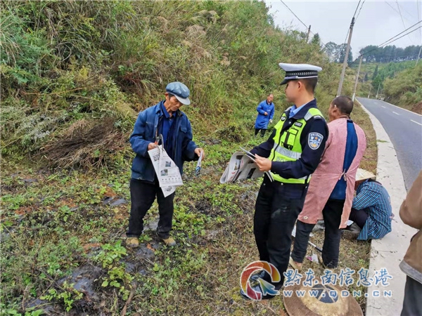 本網(wǎng)訊 為加強(qiáng)秋冬季農(nóng)村道路交通安全管理,提高農(nóng)村群眾交通安全意識(shí),預(yù)防和減少農(nóng)村道路交通事故,護(hù)航鄉(xiāng)村振興全面推進(jìn)、農(nóng)村群眾平安幸福美好生活。10月18日,貴州省施秉縣公安局交警大隊(duì)民警走進(jìn)田間地頭,開展道路交通安全宣傳活動(dòng),面對(duì)面向群眾宣講交通安全知識(shí)。