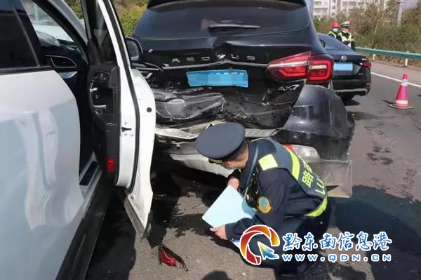 17日是春節假期最后一天,返程人員大部分都集中在這一天趕回去,轄區車流量增多,前車突然緊急制動,后車跟車距離太近且車速快,最終導致這次事故。現場其中一位駕駛員說,事故發生后他嚇壞了,看到路政、交警,心才平靜下來。