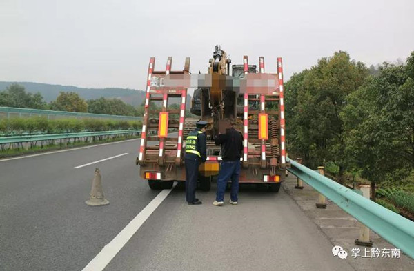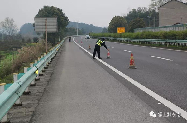 當時該車停靠在路邊時只打開了危險警示燈,并未在后方設置警示標志,考慮到此時正處春節過后的返程高峰期,高速公路車流量較大,如果不及時處置極有可能引發道路交通事故。路政員一邊詢問駕駛員情況,一邊在來車方向設置警示標志并擺放安全錐,提醒過往車輛減速慢行。