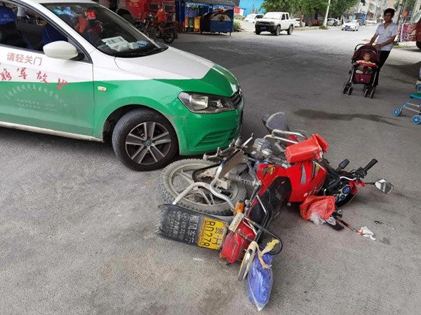 6月25日11時31分在三穗縣老車站400米處發(fā)生了一起出租車碰撞摩托車至兩車受損及摩托車駕駛員受傷的交通事故。
