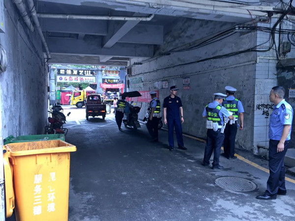 8月12日,三穗縣應急、消防、綜合執法、交警、街道辦等部門啟動執法互助機制,聯合開展消防車通道專項整治行動。