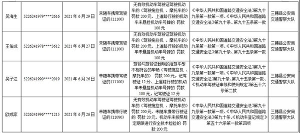 根據(jù)《中華人民共和國行政處罰法》第四十四條規(guī)定,現(xiàn)對(duì)部分違法駕駛?cè)藬M作出的處罰決定公告告知如下:
