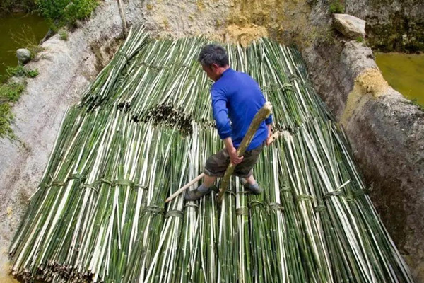 貴洞土法造紙以萬畝竹海為原材料,約500年造紙歷史。貴洞土紙制作方法原始,加工紙漿時,先撈起竹麻洗凈,放入石磨盤,用牛力拉石滾碾后,再放進水槽中,用力攪拌,待竹絨沉淀,放入清水,即可抄紙。