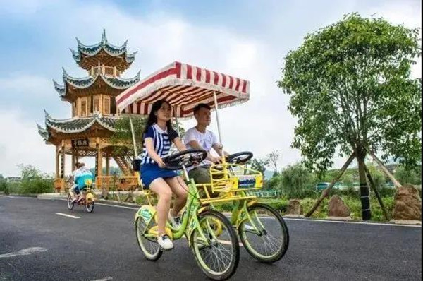 貴洞的翠園生態山莊,其四面竹林風光自成格調,山莊集餐飲與休閑于一體。青山翠竹像綠色的波浪,綿延起伏不斷。站在觀景臺上,放眼望去,萬畝竹海盡收眼底,還有古法造紙作坊以及林間小木屋也在其中……