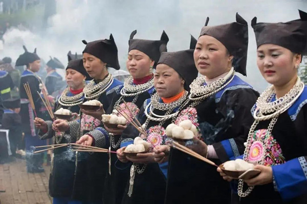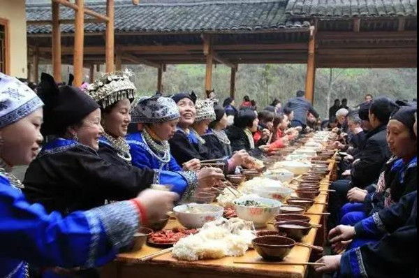 三穗寨頭村“二月二”民族文化藝術節活動內容有---“禳橋”、苗家婚俗、盤古歌、對情歌、吹木葉、苗家傳統工藝品展示等。這一天,當地苗家群眾要祭祀祖先, 向外界公開展示了他們神秘的民風民俗和富有神韻的傳統民族文化。