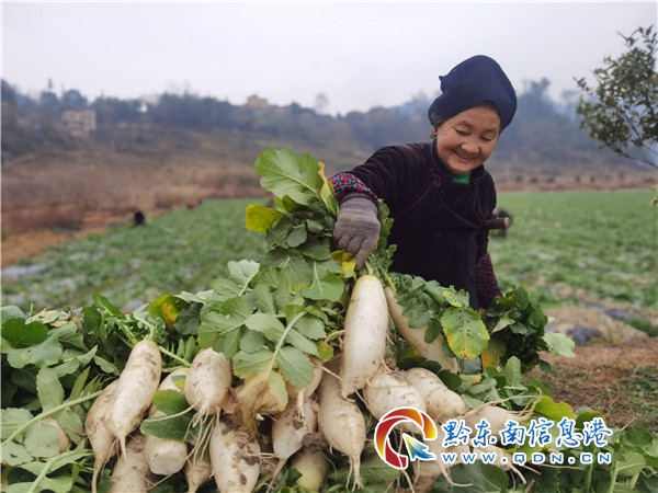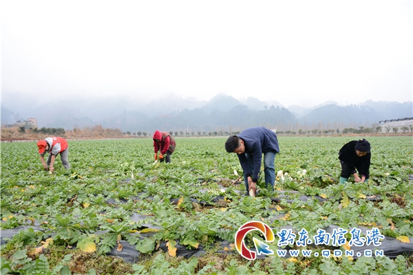 2020年10月,臺江縣老屯鄉積極調整農村產業結構,充分利用轄區千畝以上壩區資源,大力發展構建以白蘿卜為主的蔬菜種植產業鏈條,通過創建“村社合一”黨建扶貧新模式,動員農戶特別是貧困戶積極參與到產業發展中來,走出了一條貧困群眾在家門口實現就業增收的新路子。